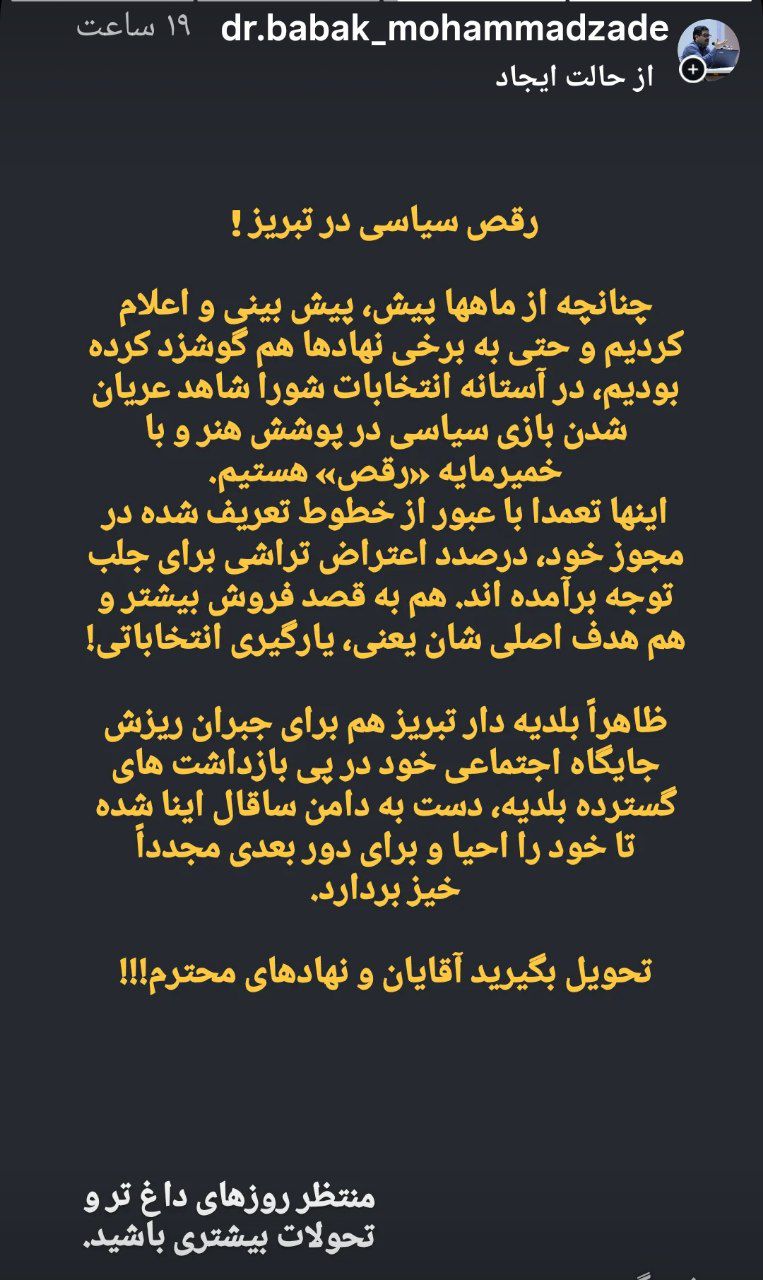 در پی آن، ادارهکل فرهنگ و ارشاد اسلامی آذربایجان شرقی با بررسی میدانی و مستندات و تایید تخلفات انجام شده خارج از مجوز و ضوابط مشخص شده، ضمن تذکر رسمی به گروه اجرایی، خواستار اصلاح فوری بخشهای خلاف مجوز شد.