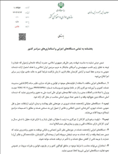 استانداران نیز در چارچوب این بخشنامه اختیار اتخاذ تصمیم درباره نحوه فعالیت دستگاههای اجرایی در استان خود را دارند.